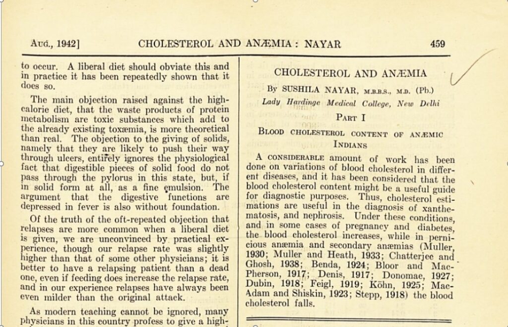 Still, her findings were revealing. She observed that serum cholesterol in Indians tended to be lower than in Europeans. That anaemia bore no direct relationship to cholesterol. That parasitic infections—common in her patients—drove cholesterol levels even lower. That liver therapy outperformed cholesterol injections in treating macrocytic anaemia of pregnancy. But in the postpartum period, cholesterol seemed to speed recovery a little.